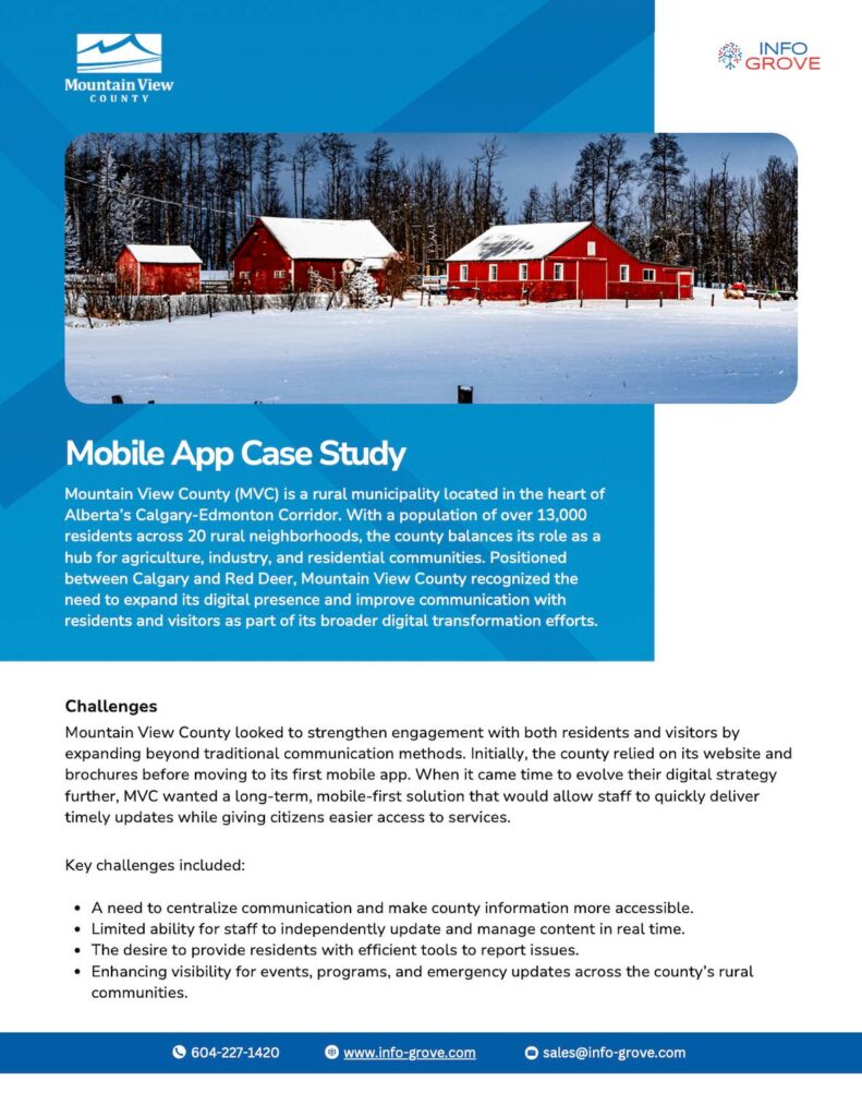 From citizen alerts and push notifications to resident complaints and streamlined communication, Info Grove’s mobile app platform helps your community stay informed and connected.